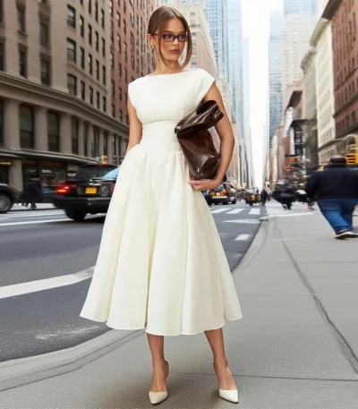 Cut Out Back Midi Dress Wide Shoulder Fitted Waist