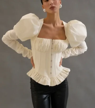 Square Neck Puff Sleeve Backless Blouse Club Party Top