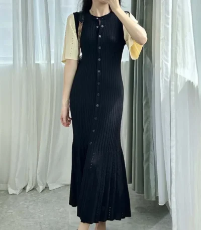 Openwork Knitted Fishtail Dress Short Sleeve Summer A Line