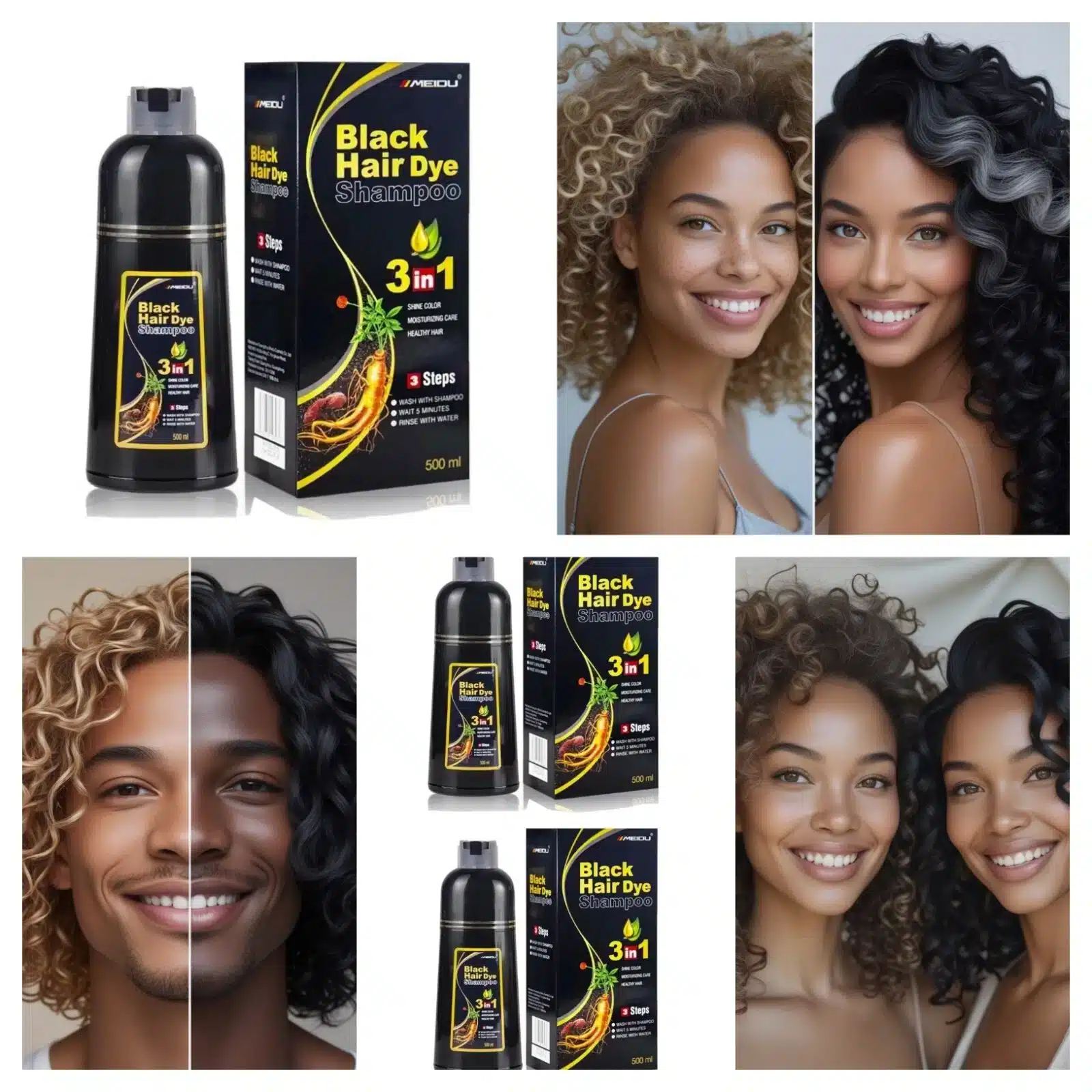 Be the first to review “2 Bottles of Black Hair Color Shampoo 3 in 1 +100% Grey Coverage”