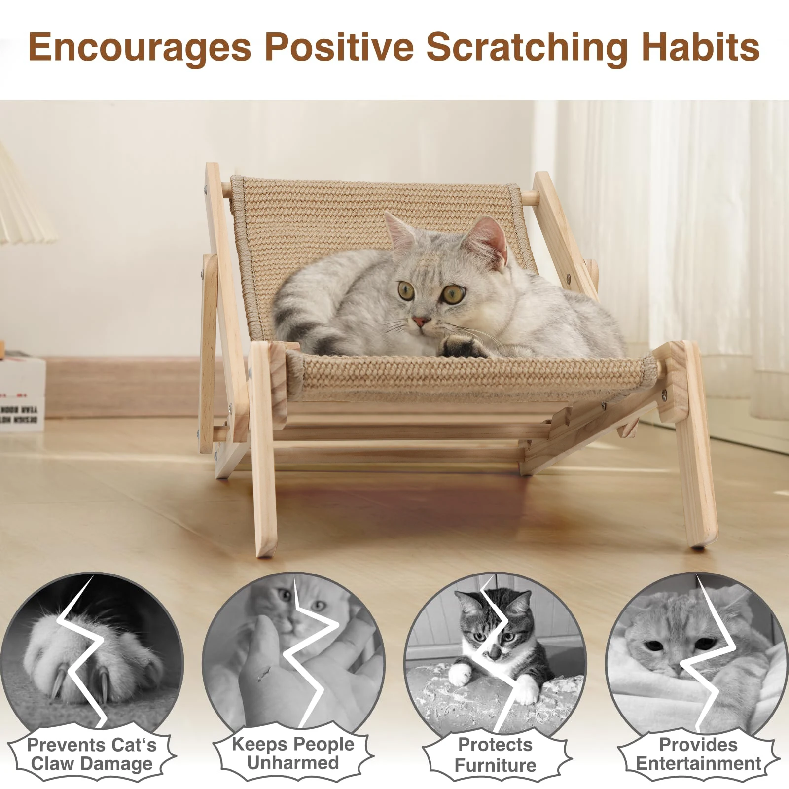 This sisal cat scratcher bed features four adjustable reclining positions, including a completely flat position as a bed. This lounger ensures the perfect lounging angle for your furry companions and It is ideal for scratching, lounging, or napping.