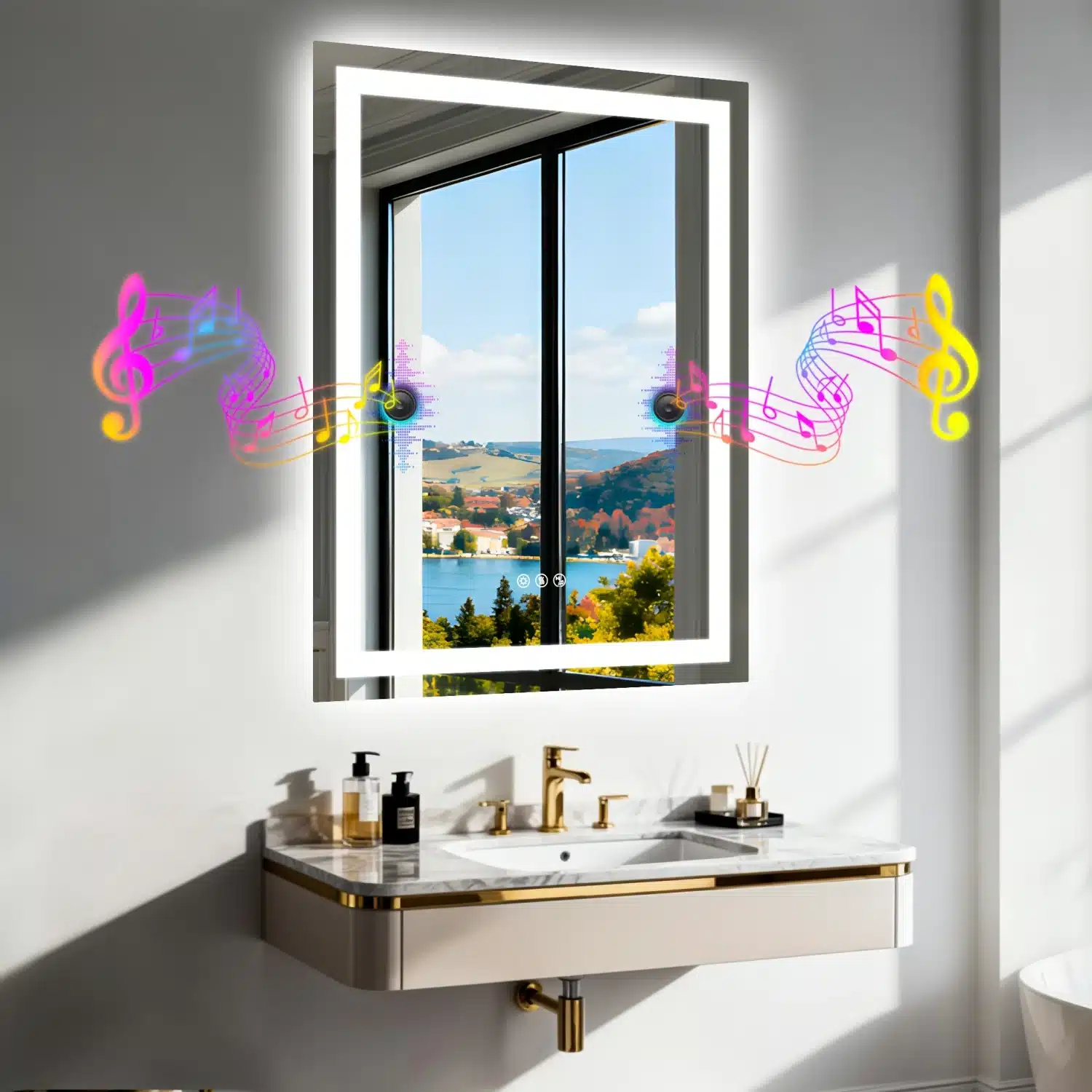 60cm LED Bluetooth Bathroom Mirror 3 Color Dimmable Waterproof