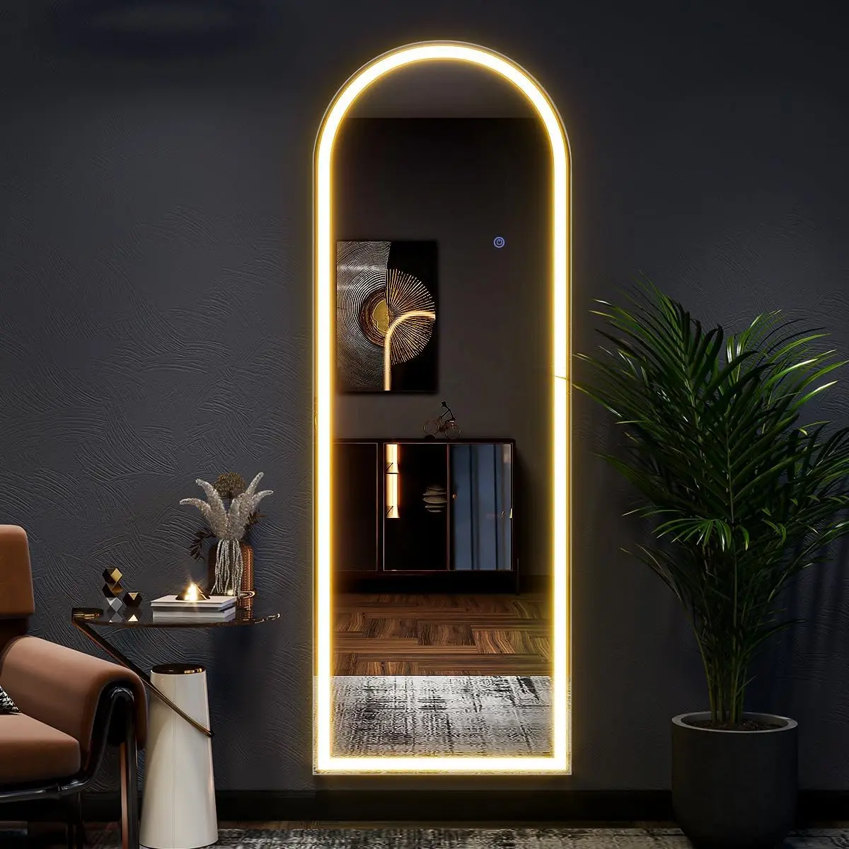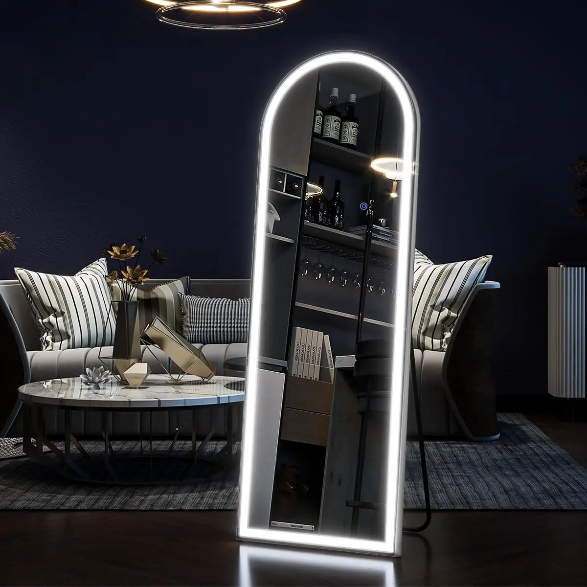 63″x20″ Arched Full-Length Mirror with Lights