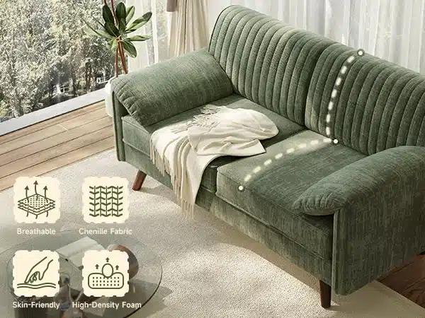 The loveseat sofa’s breathable chenille upholstery combines softness with resilience. This durable couch material ensures long-lasting wear-resistance for daily use in any living space.