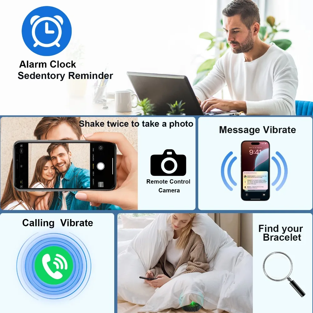 【All-Night Sleep Tracking】Smart wristband with 24/7 sleep monitor. Tracks nighttime sleep + daytime naps, records wake-up time, total sleep duration & sleep stages (light/deep/REM). Adjust rest schedule with sleep pattern insights.