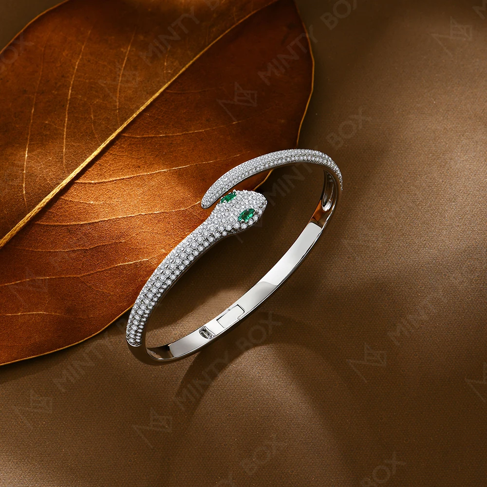 MINTYBOX Snake S925 Silver Moissanite Bracelets for Women Lab Diamond 16-19cm 18k Gold Plated Wedding Luxury Fine Jewelry Gift
