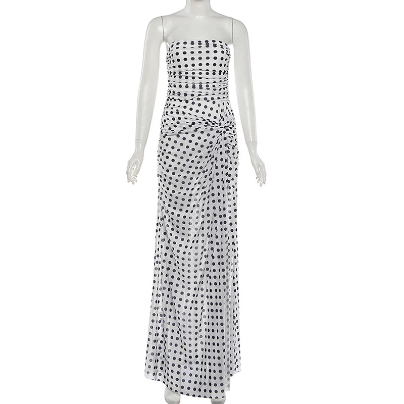 Polka Dot Backless Split Maxi Dress Strapless Evening Gown