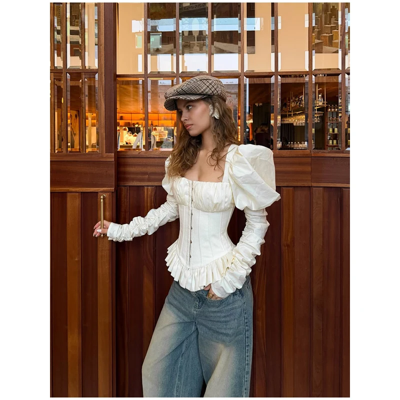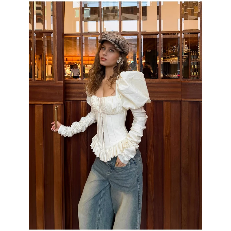 Dramatic Puffed Long Sleeves – The trendy puffed sleeves create a statement shape, blending retro charm with contemporary style.