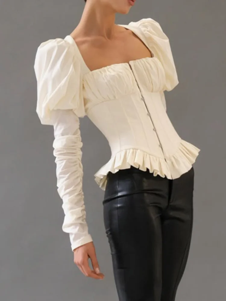 Dramatic Puffed Long Sleeves – The trendy puffed sleeves create a statement shape, blending retro charm with contemporary style.